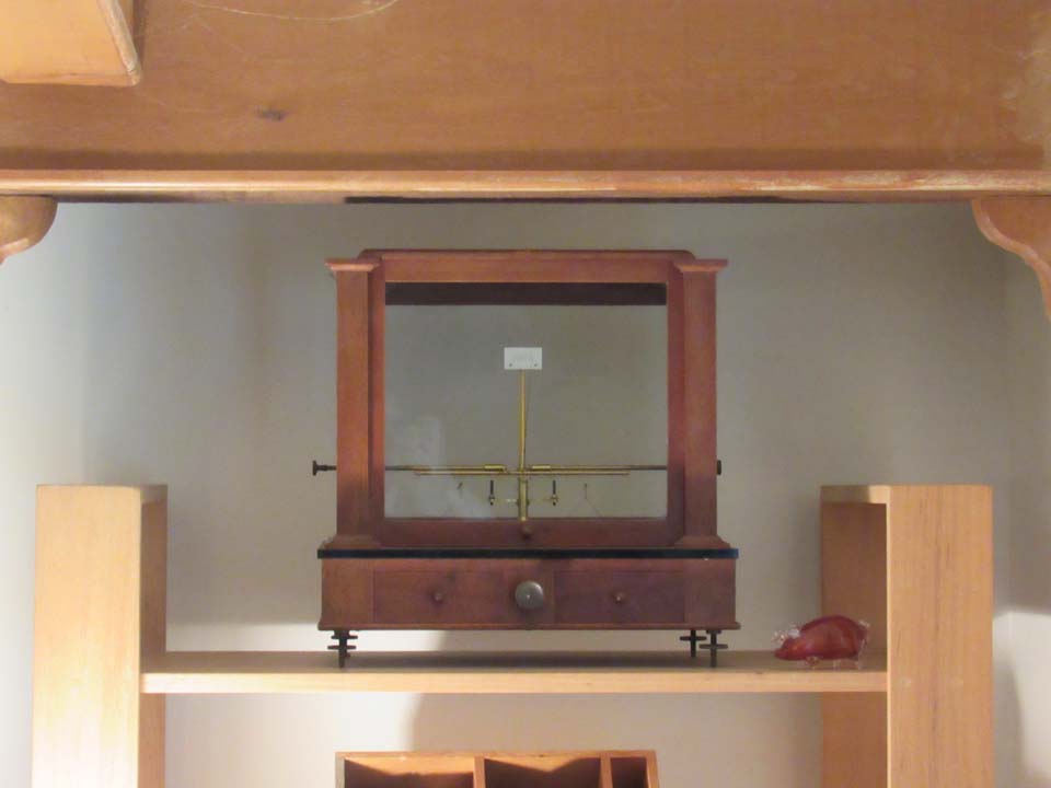Miner’s or assayers scale made by G.D. Keller Salt Lake City, Utah USA with 2 drawers and sliding glass door and adjustable legs 16 ¼” x 10” x 16 ½” at highest point. This was all G. H. Malan got out of a silver mine that he had invested $20,000 in in 1920’s after it went broke. It was passed to me by mother, as it was passed to her by her father, with the words: “Be careful. Not all investments that seem good are.” (or a paraphrase of that.)
