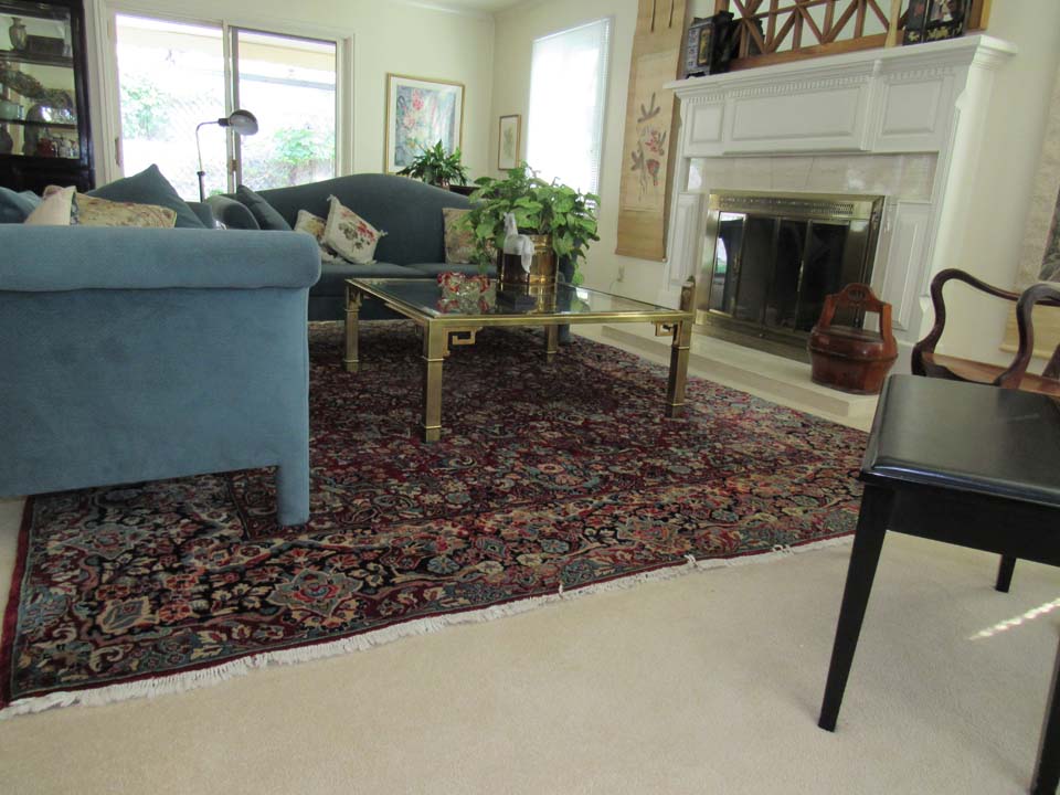 Red, blue and multicolored Persian rug bought by Hal and Lorna Cole mid 1930’s Sareok. They must have gotten a great price because of the weaving flaw going across it in its middle portion. Grampa Cole loved bargains, even if flawed. 12’ x 2” x9’